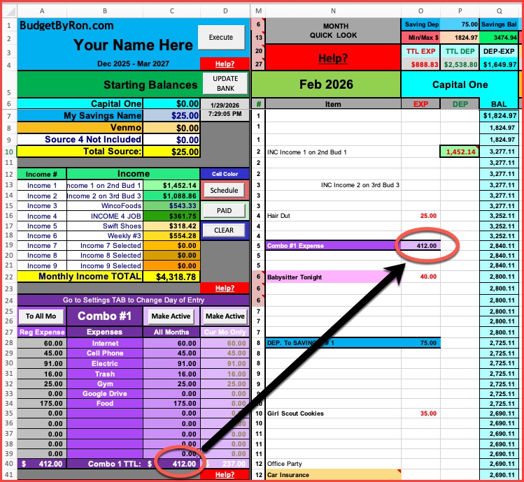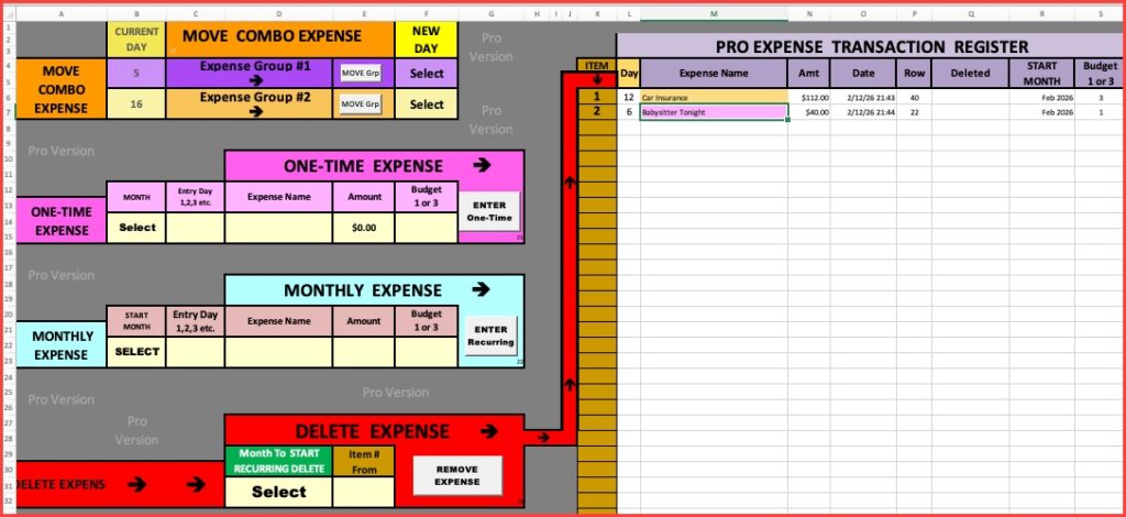 | 9 Unique Incomes: * Weekly, Bi-Weekly, Monthly | Unlimited Individual Expenses Unlimited Recurring Monthly Expenses |