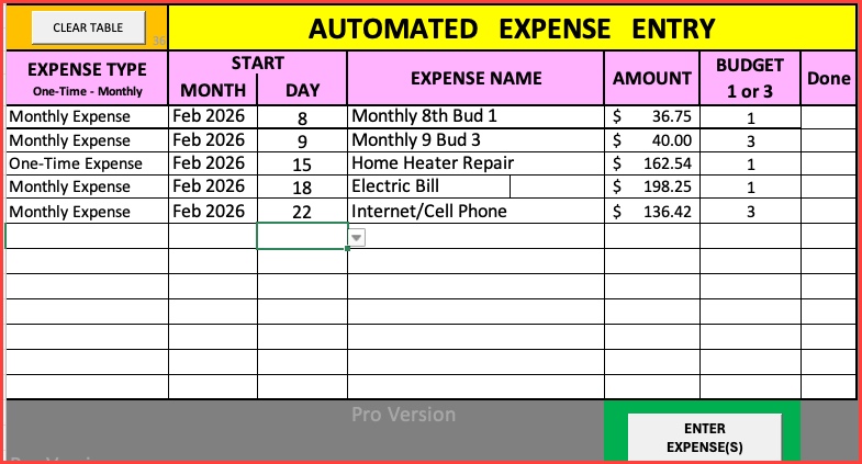 One Time, Monthly (Enter and Delete)